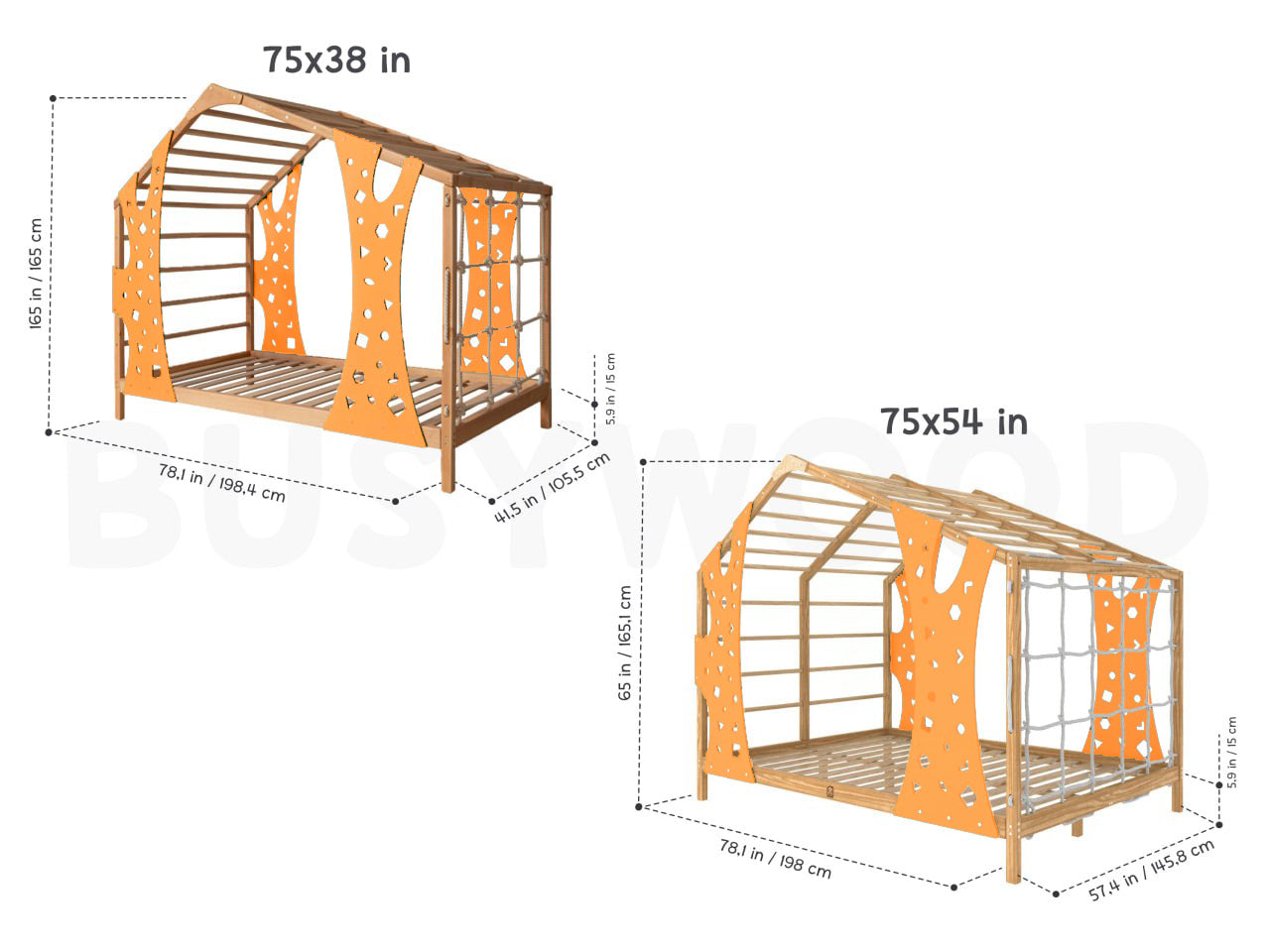 BusyWood Monkey Bed is a unique combination of a comfortable toddler bed and a wooden play gym. This kids playground is created to give your child personal space, relaxing rest and active development at the same time. This extraordinary bed features a rope net wall and a sturdy ladder, transforming bedtime into a thrilling escapade. Designed to serve as both a cozy floor bed for peaceful slumber and an exhilarating playhouse for endless fun and frolic, it guarantees hours of joyous activities for your kiddo.