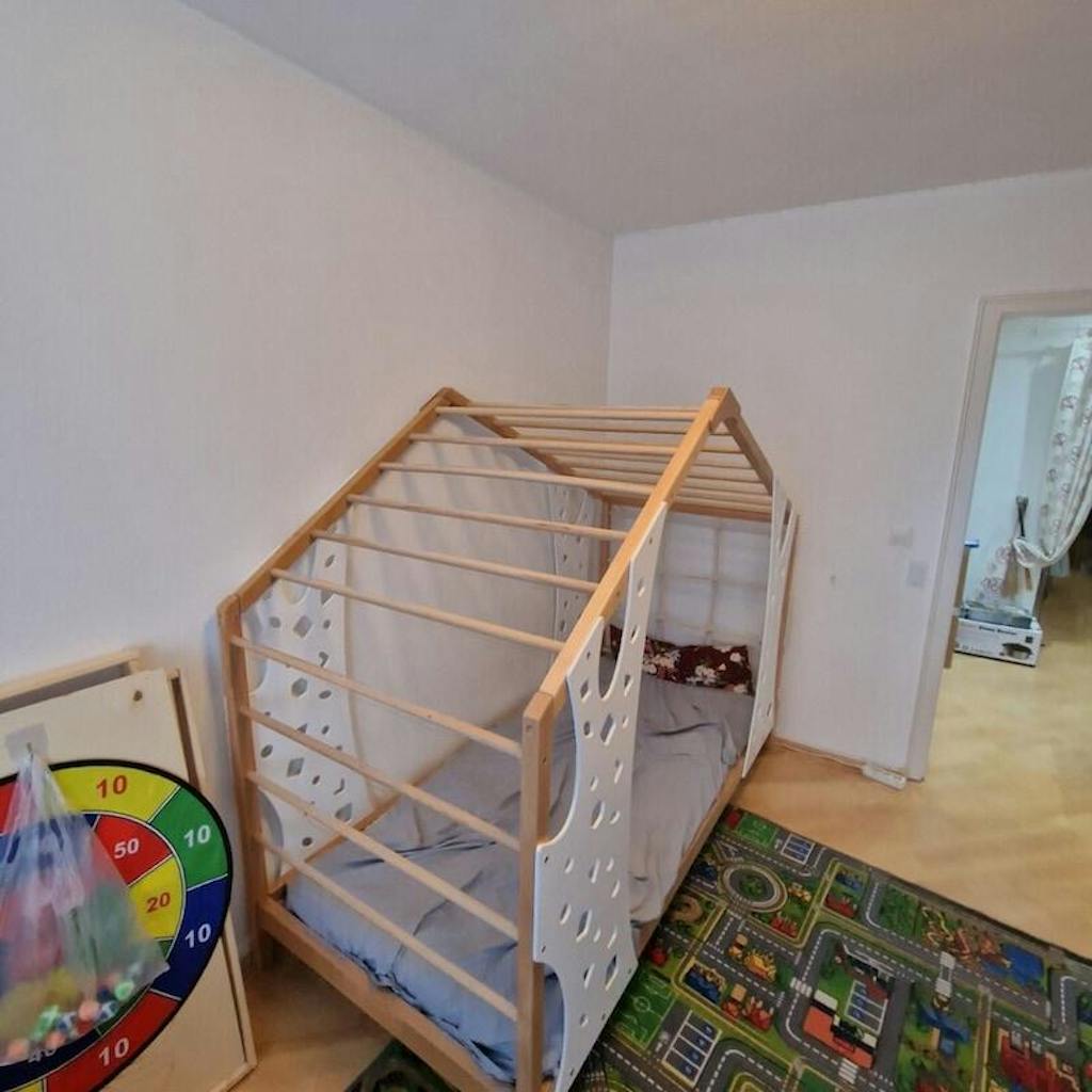 BusyWood Monkey Bed is a unique combination of a comfortable toddler bed and a wooden play gym. This kids playground is created to give your child personal space, relaxing rest and active development at the same time. This extraordinary bed features a rope net wall and a sturdy ladder, transforming bedtime into a thrilling escapade. Designed to serve as both a cozy floor bed for peaceful slumber and an exhilarating playhouse for endless fun and frolic, it guarantees hours of joyous activities for your kiddo.