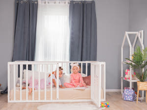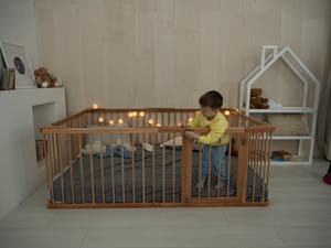 Our playpens with rails are not just a safe place for play, but also a space for your little one’s development. Made from natural wood and finished with water-based paints and varnishes, they are completely safe for children. In such a playpen, your child will not only be protected from accidental falls but also learn to be more independent, which is so important in early childhood. We’ve got everything to help create a comfortable and safe space for your little one to play and rest!