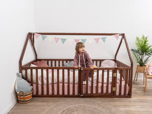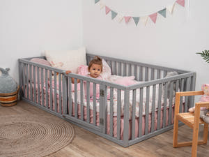 Choosing a floor bed with rails helps protect your child from sudden falls while also encouraging independence. With this kind of bed, you can leave your child alone for short periods, which they will gradually get used to. This promotes their abilities and fosters the Montessori principle of self-sufficiency. Additionally, our floor beds are made from natural wood, and the paints and varnishes we use are water-based, ensuring a safe and eco-friendly environment for your child.