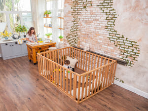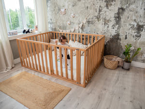 Our playpens with rails are not just a safe place for play, but also a space for your little one’s development. Made from natural wood and finished with water-based paints and varnishes, they are completely safe for children. In such a playpen, your child will not only be protected from accidental falls but also learn to be more independent, which is so important in early childhood. We’ve got everything to help create a comfortable and safe space for your little one to play and rest!