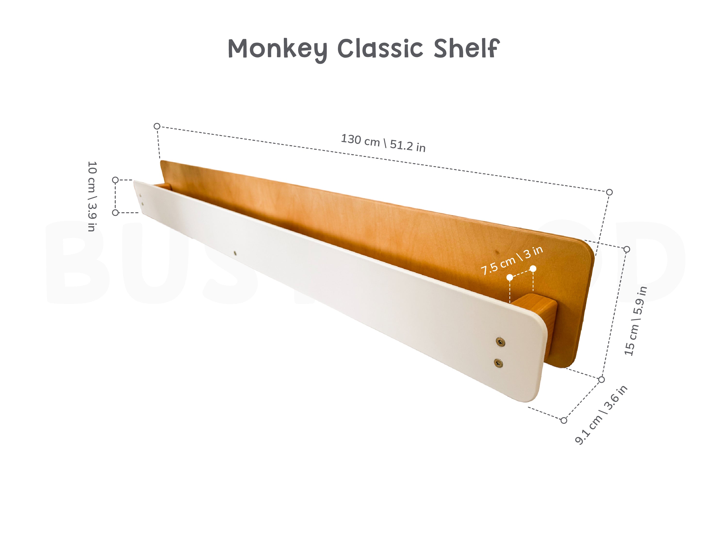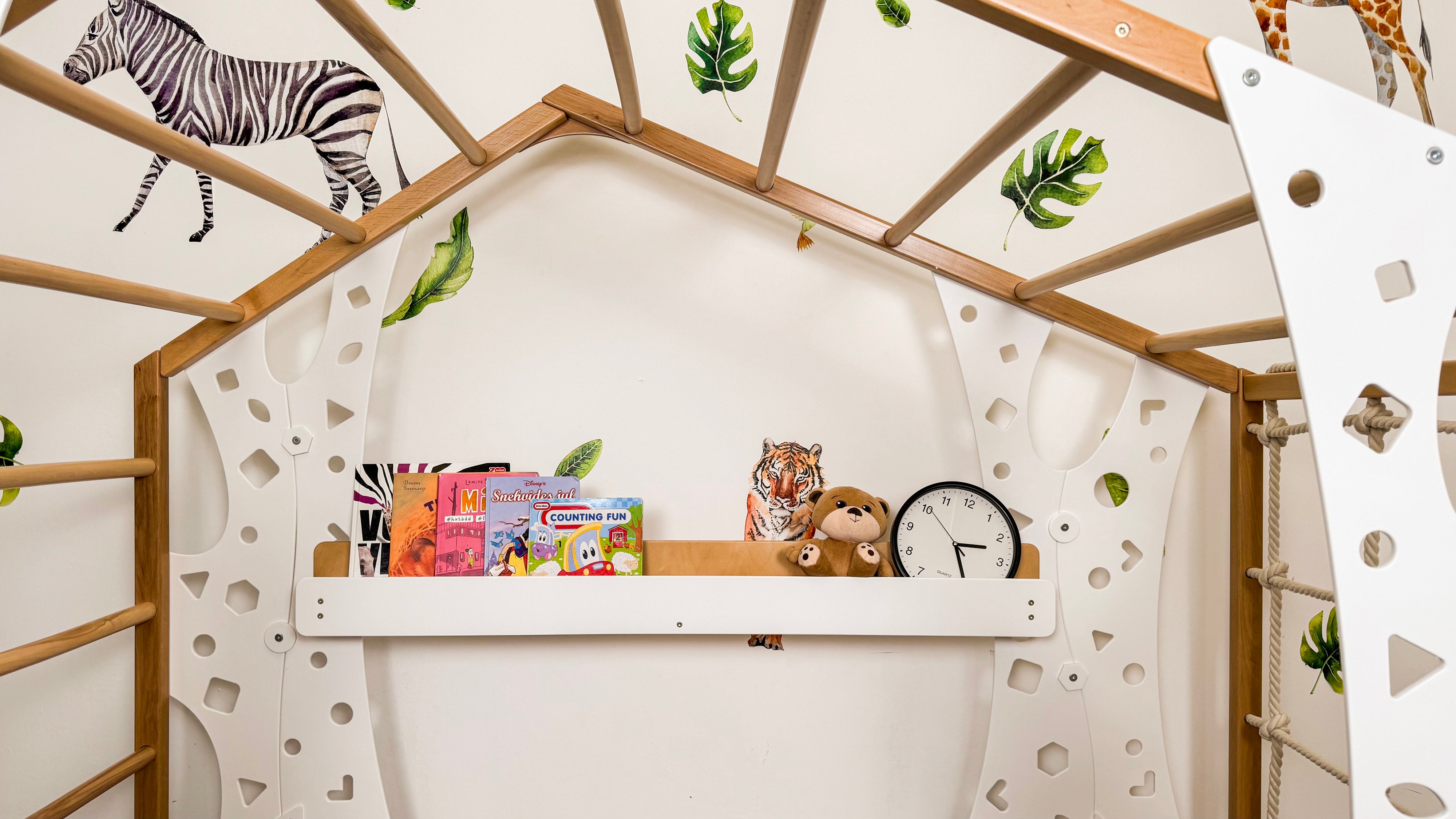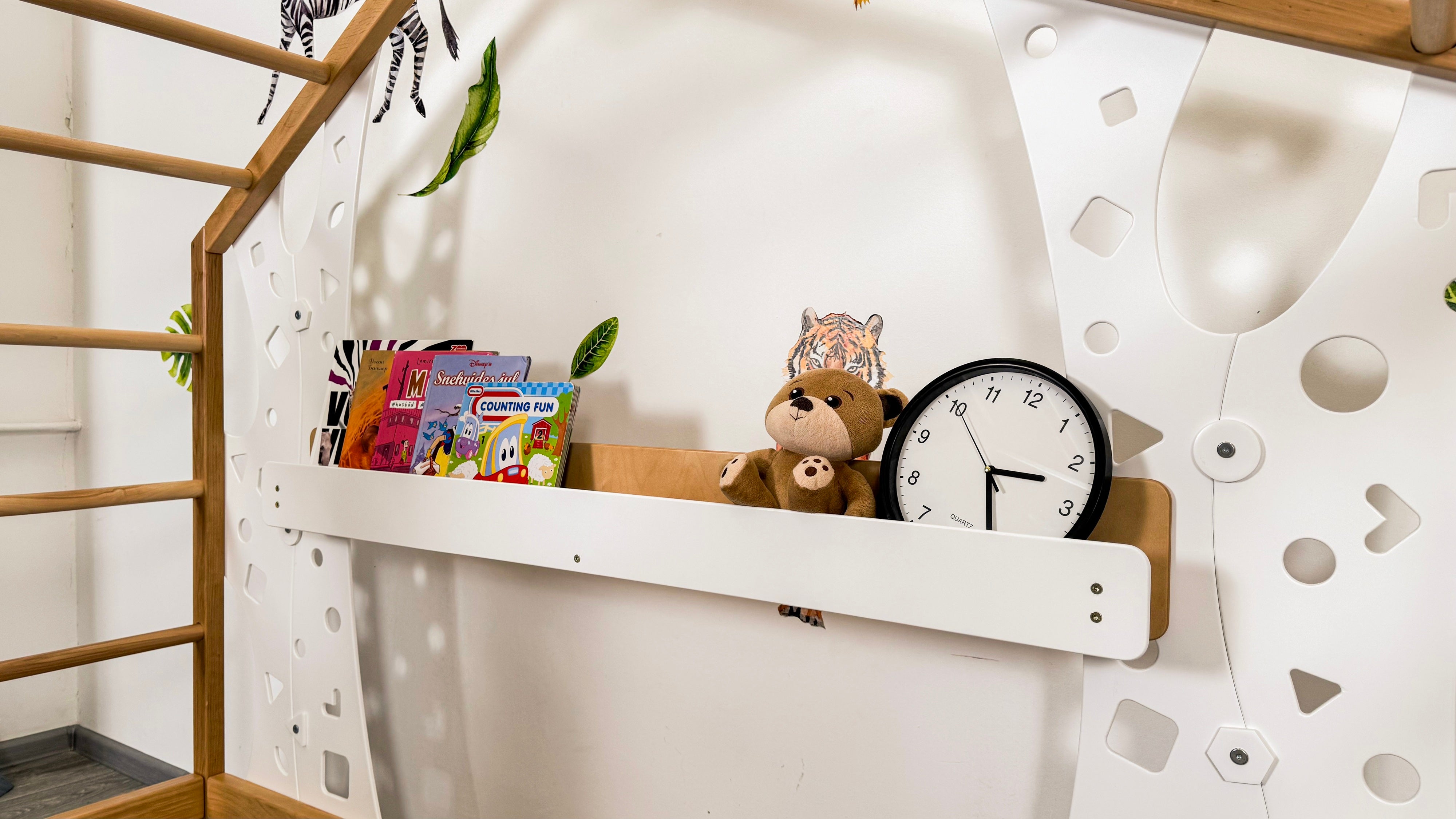 Our Monkey Classic Shelf is a simple and practical addition to the bed. It is securely attached to the frame, providing a stable space for books, toys, a nightlight, or small decorations.
