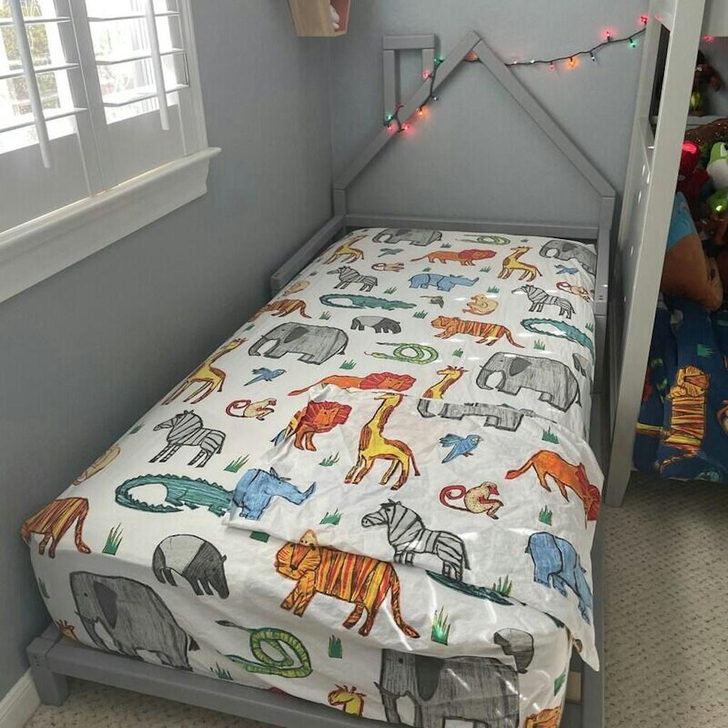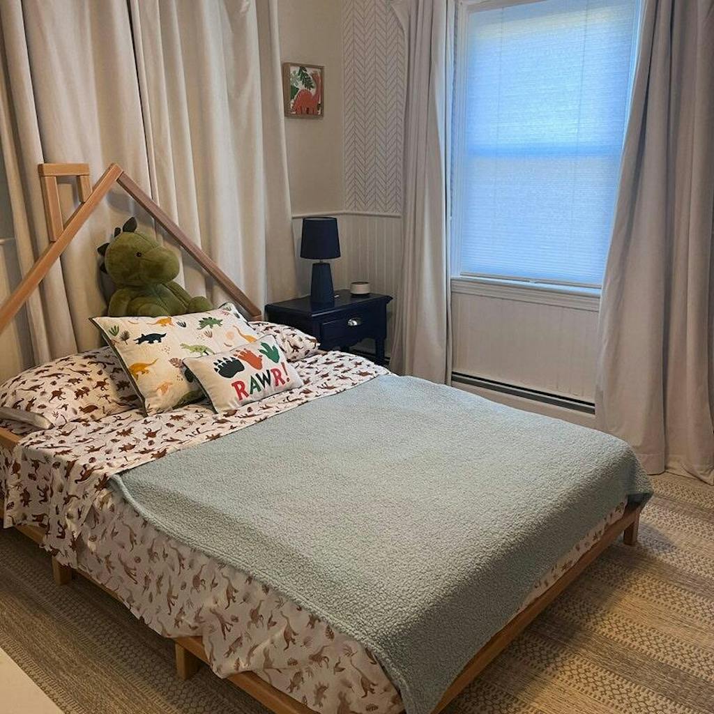 This toddler Montessori bed with a cute house-shaped headboard is designed to provide a safe and comfortable sleeping experience for your child. With its low frame and supportive side rails, it allows your little one to climb in and out of bed independently without compromising their safety. Meanwhile, the headboard adds a touch of style and sophistication to the design, creating a cozy and inviting atmosphere in their bedroom.