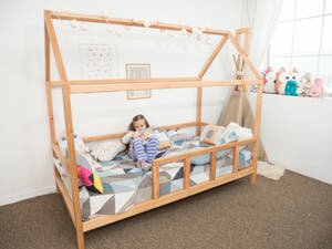 With over 80 variations and sizes from crib to king, our collection adapts to every room and child’s needs. Each Montessori floor bed with legs meets American safety standards, offering peace of mind and long-lasting quality.
