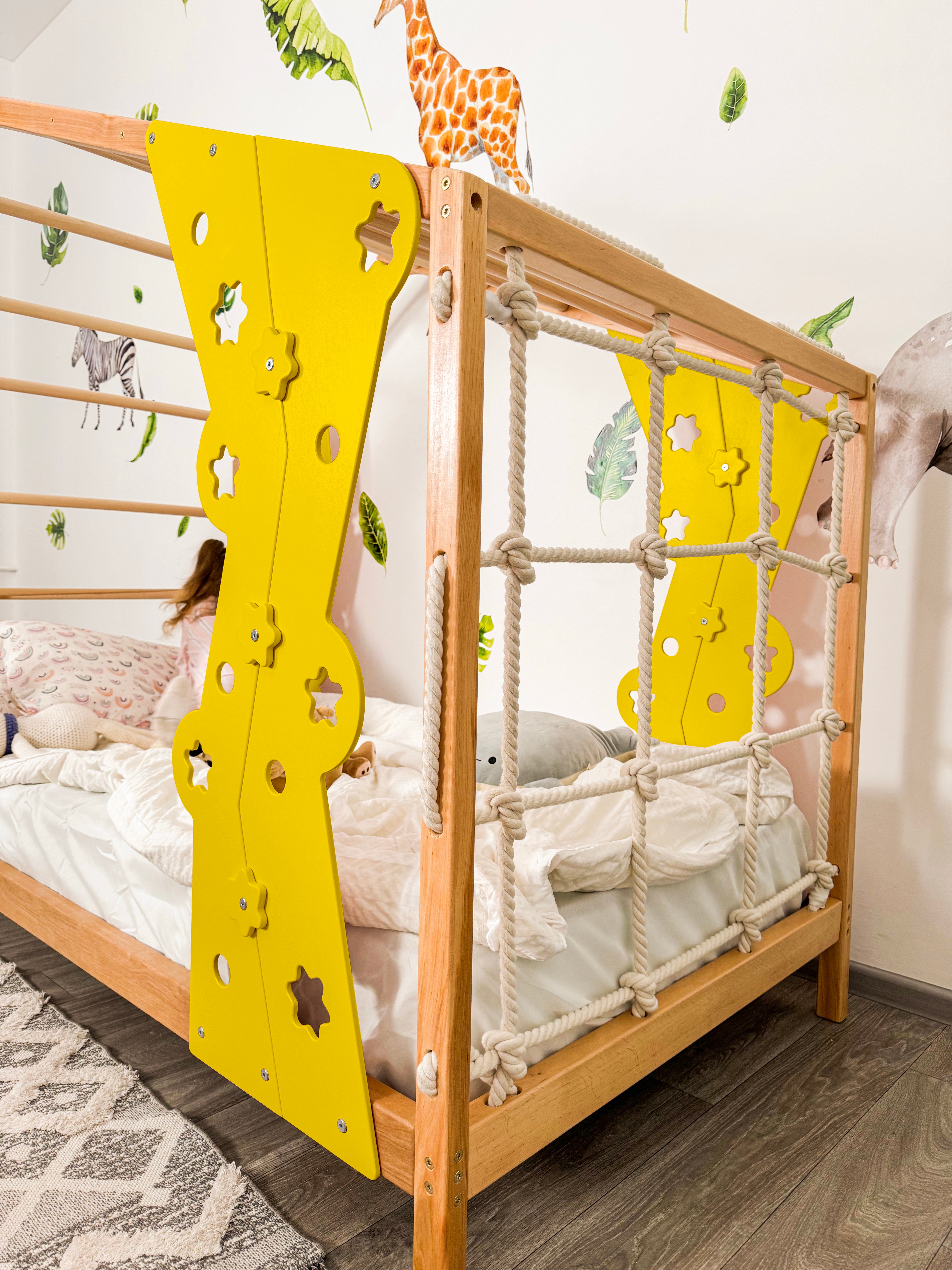 Not just a bed - it’s a Montessori gym bed, indoor playground & climbing frame all in one! This girls bed is a great choice for toddlers who require their own safe and cozy space. Montessori-inspired, it's low to the ground so your child can climb in and out independently, which encourages confidence and independence. Ideal as a toddler floor bed or floor crib, it combines comfort with fun style for everyday use.