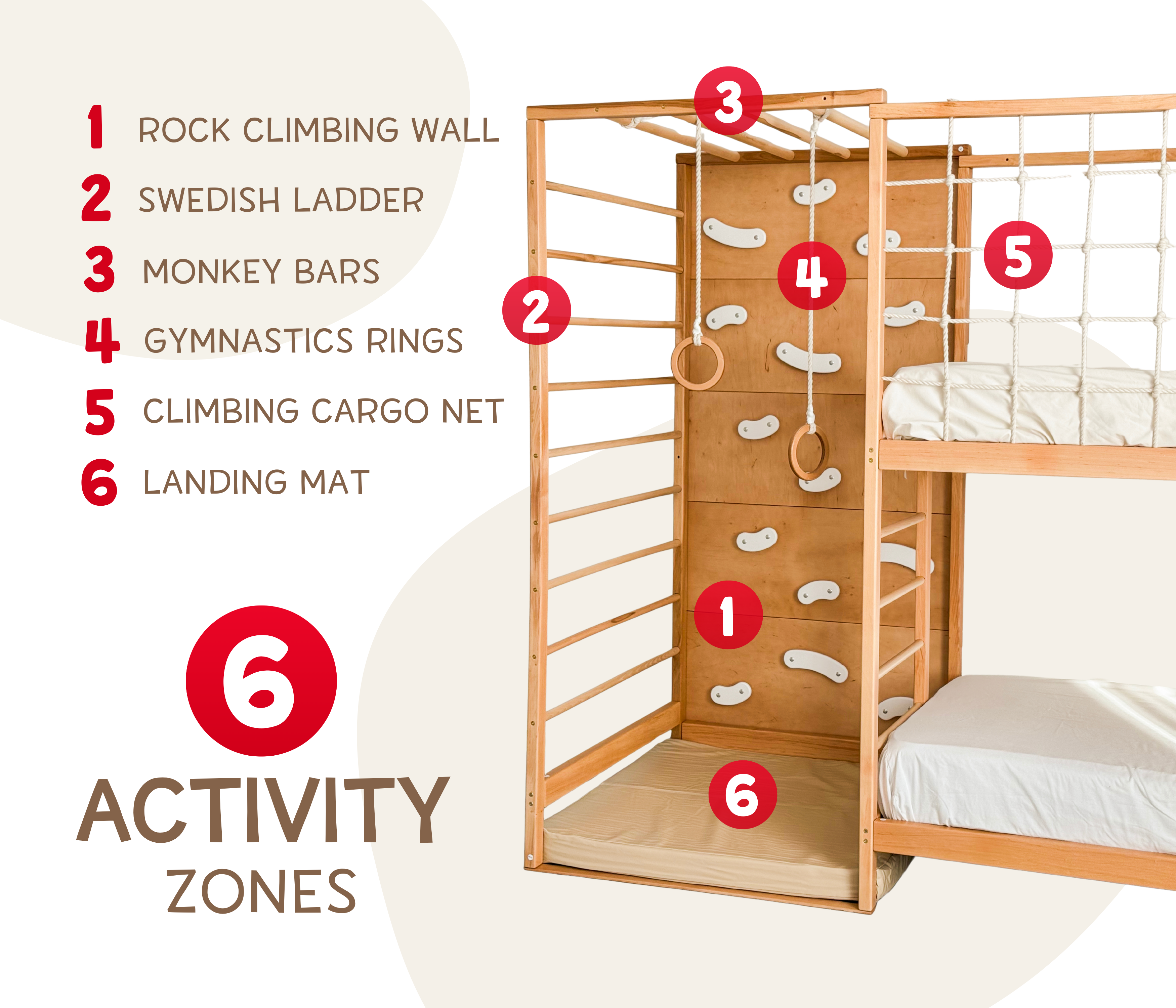 Want to add drawers or a table to the bed? Check the variation of the Jungle Indoor Playground here