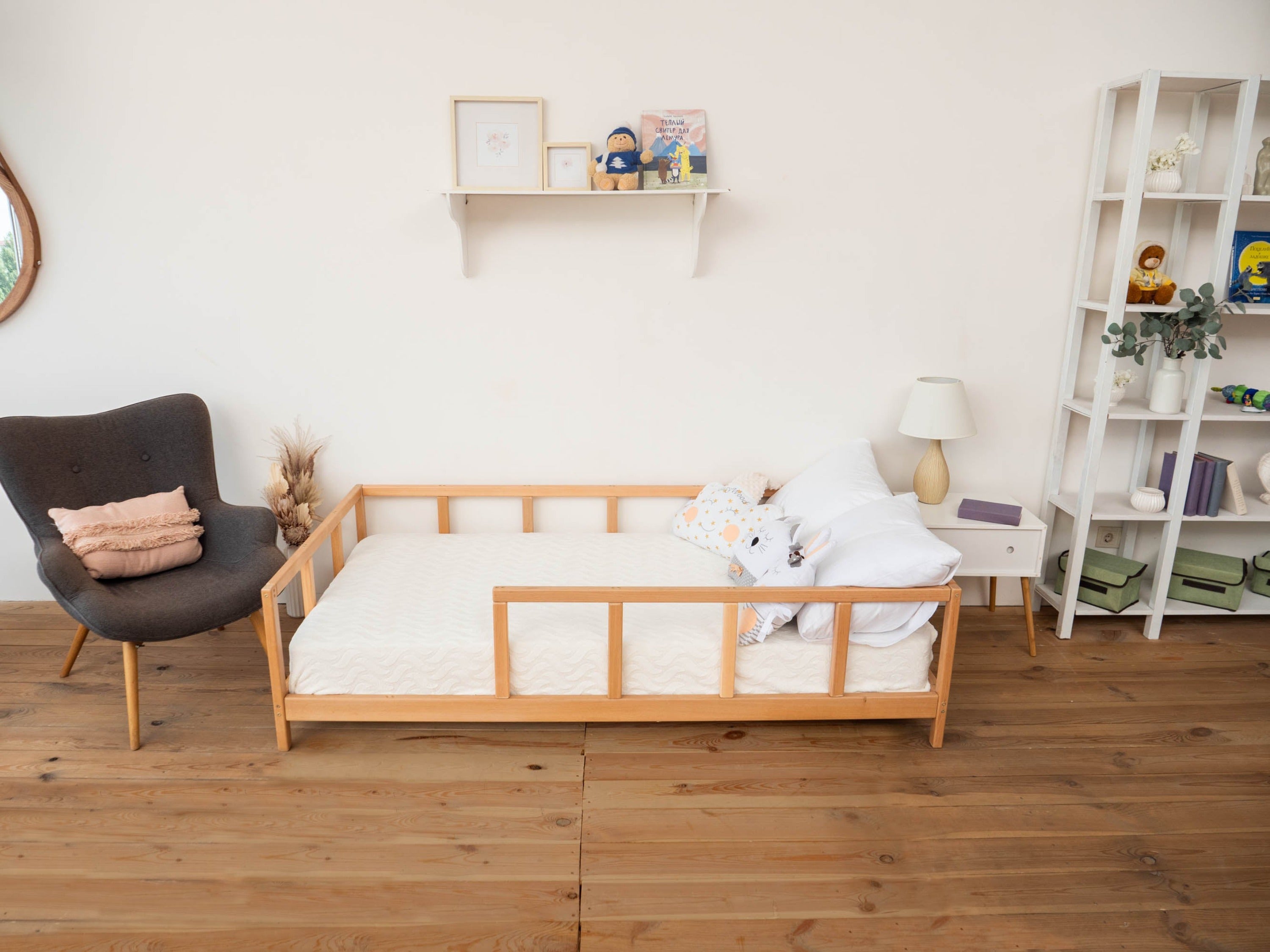 ✦ The kids' Montessori Bed is an integral and super fun part of the Montessori Bedroom. This bed enables freedom of movement, independence, and mobility of the child. Children can explore the environment, wake up and move around without the possibility of falling off the bed.