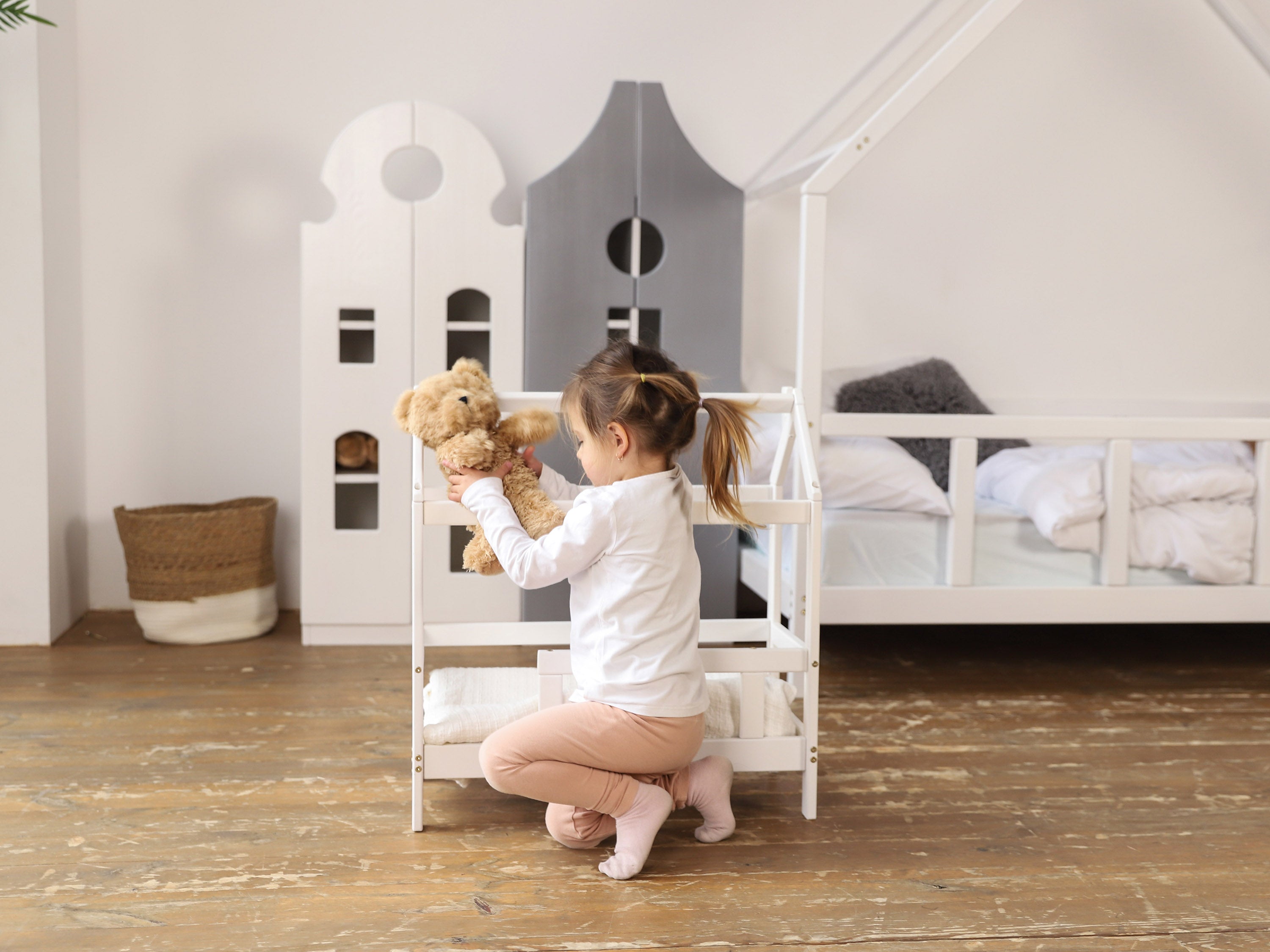 Doll Bed by Busywood is a mini version of the big girl's bed.