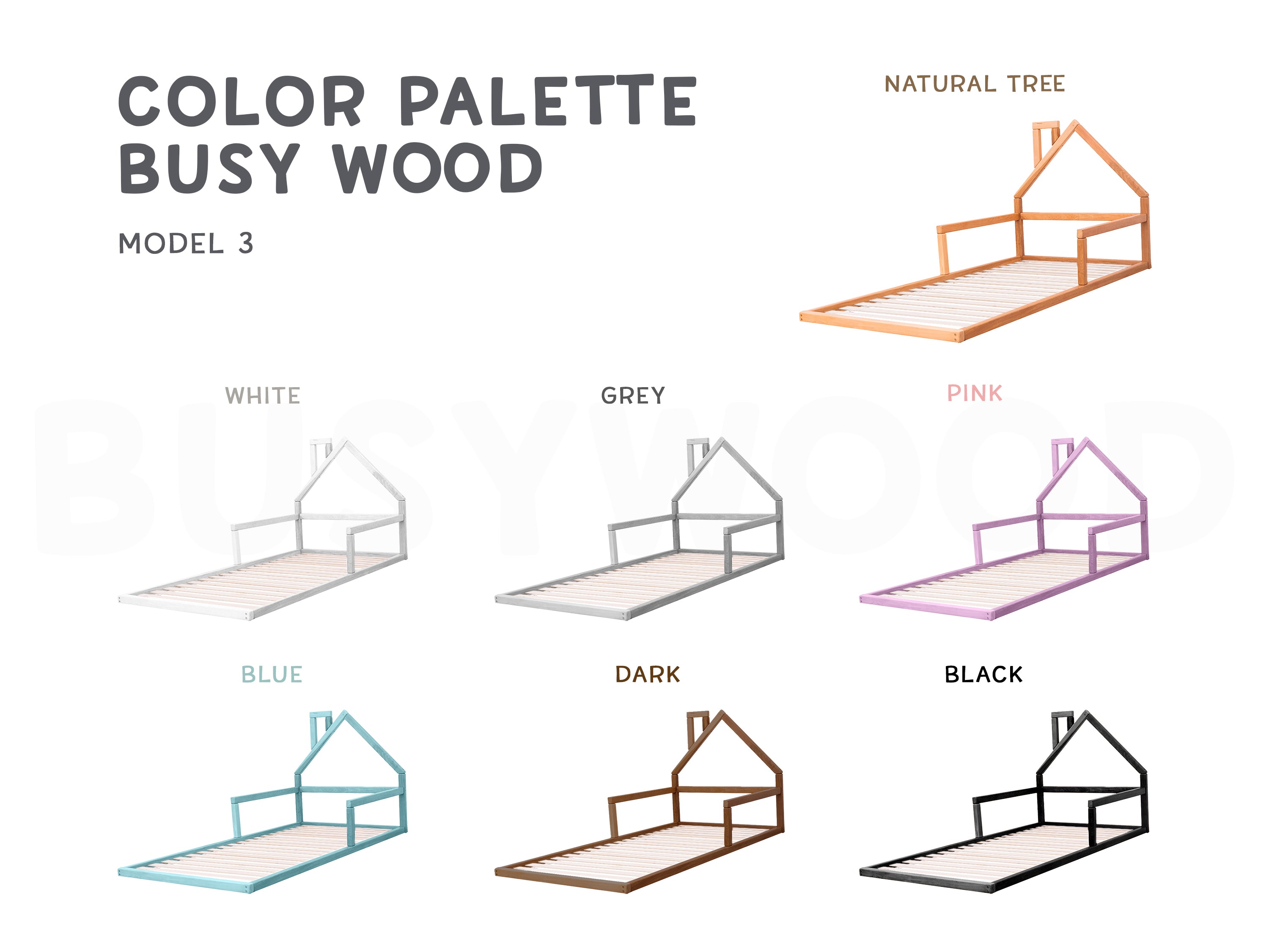 Montessori bed frame with mattress base 13 sizes | 7 colors (Model 3)